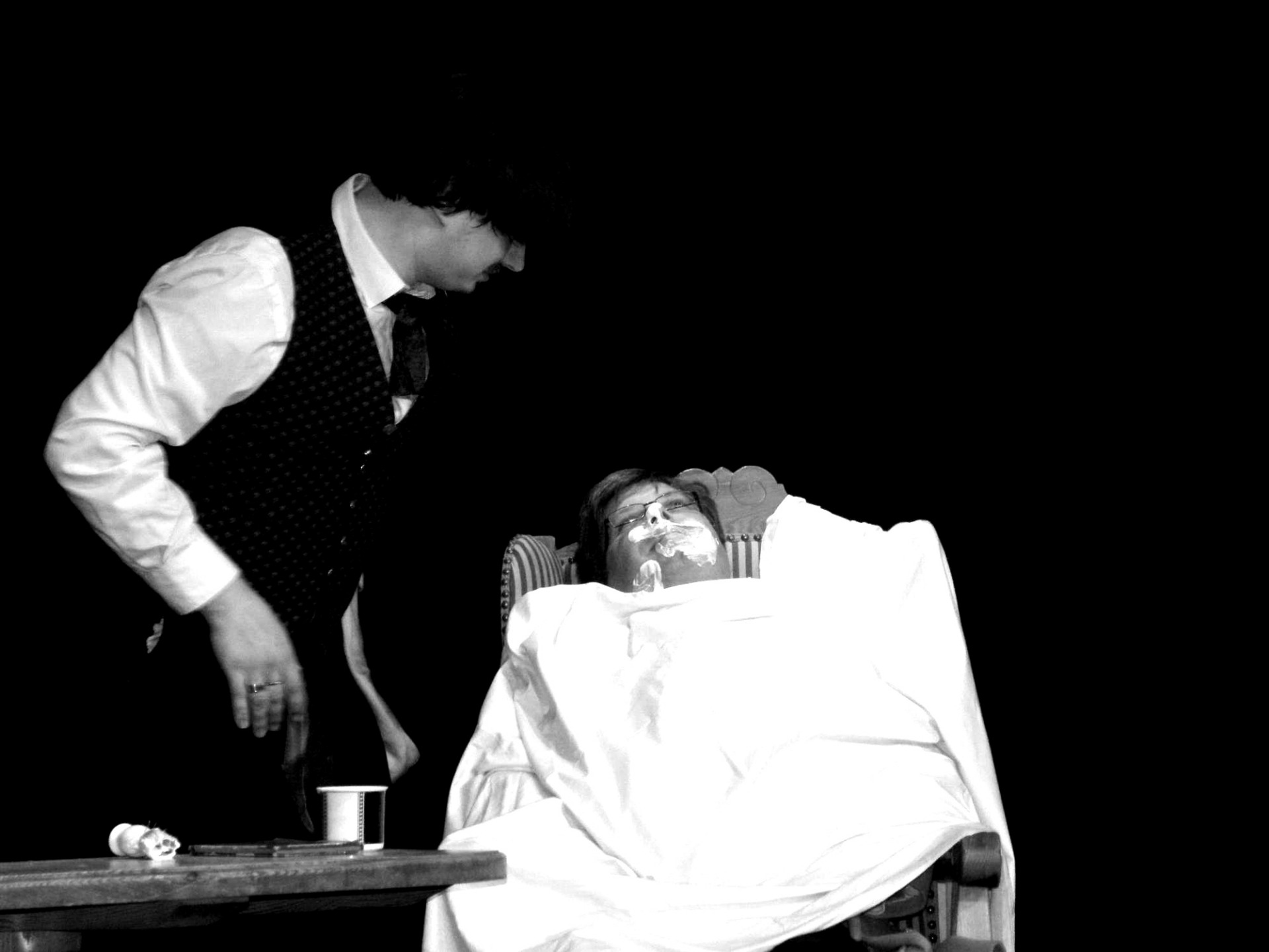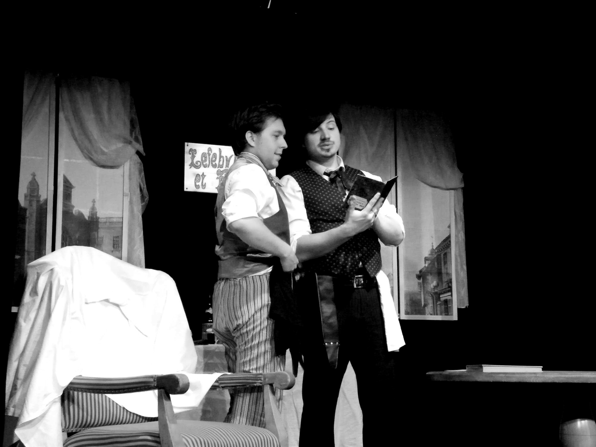 Kostýmování a výprava na první pohled připomíná secesní prostředí frašek Feydeaua, do fiktivního francouzského městečka oné doby je děj také situován, a autor i režisér Herejk nás ubezpečuje, že i on dokáže docela obstojně vytvářet nevázaný humor a komické scény obohacené o odstíněnou charakteristiku jednajících postav. Dalším inspiračním zdrojem byly autorovi bezpochyby komedie Voskovce a Wericha, a to především při traktování ústřední dvojice společníků provozující lazebnický salon. Pierre Lefebvre (Miroslav Herejk) a Juste Fournier (Roman Gerhát) dokáží spolu bezprostředně konverzovat, uplatnit ve správnou chvíli slovní vtip a vzbuzovat zdání lehké improvizace.